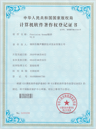 《Precision sound軟件V1.0》于2019年8月02日被正式授予《中華人民共和國(guó)國(guó)家版權(quán)局計(jì)算機(jī)軟件著作權(quán)登記證書(shū)》,登記號(hào)為2019SR0997795。