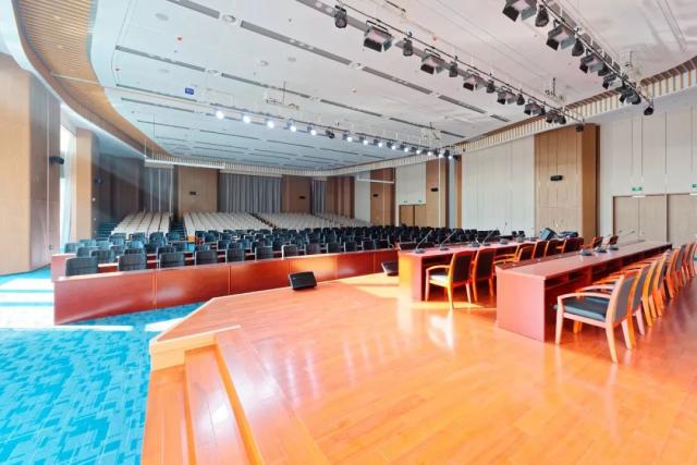 培訓(xùn)會議樓內(nèi)的多功能廳具備會議、活動等功能。含固定座椅和活動桌椅??扇菁{540人,配有隔斷進行多功能使用。