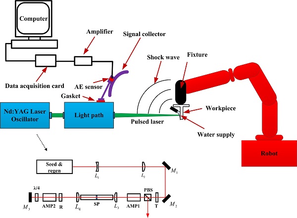 激光沖擊強(qiáng)化是一種利用激光誘導(dǎo)等離子體沖擊波對金屬材料進(jìn)行強(qiáng)化的表面改性技術(shù),表面粗糙度、微觀組織變化、硬度、殘余應(yīng)力等是衡量激光沖擊強(qiáng)化質(zhì)量的重要參數(shù),然而這些參數(shù)的獲得,目前均是通過離線測試的方法,這些方法效率低下、不能及時(shí)更改工藝,限制了激光沖擊強(qiáng)化的大規(guī)模工業(yè)化生產(chǎn),因此亟需開發(fā)無損在線檢測方法與系統(tǒng)。