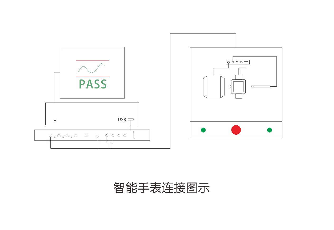 步驟1:將待測(cè)智能手表固定在測(cè)試箱中,然后與RS-516音頻輸入通道對(duì)接